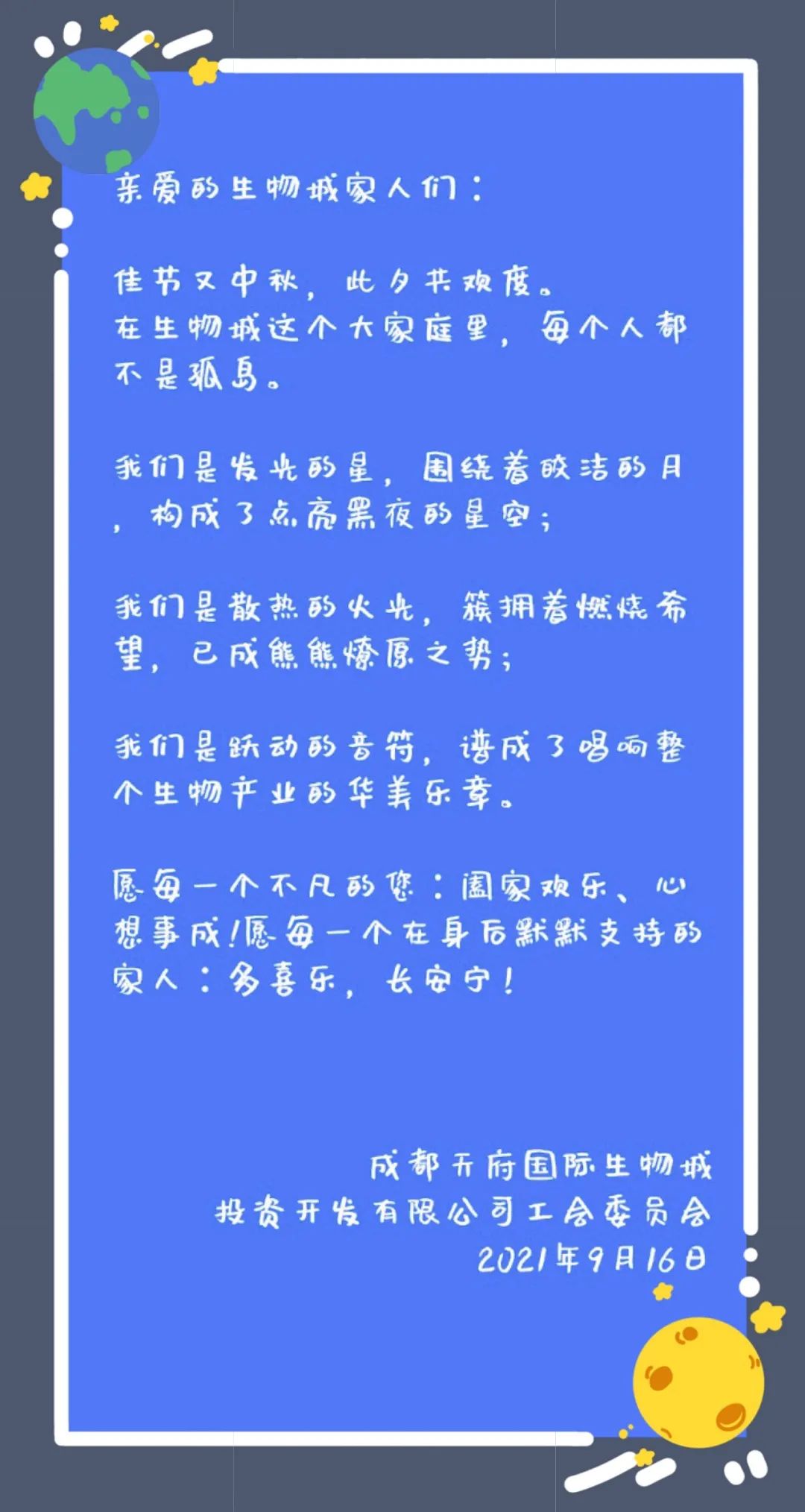 隨著節(jié)日臨近,為進(jìn)一步弘揚(yáng)中華民族傳統(tǒng)文化、豐富節(jié)日文化內(nèi)涵、充實(shí)員工文化生活,生物城公司工會(huì)于9月16日下午,舉辦了“一紙家書,二兩皂香”2021年中秋節(jié)創(chuàng)意手工活動(dòng)。