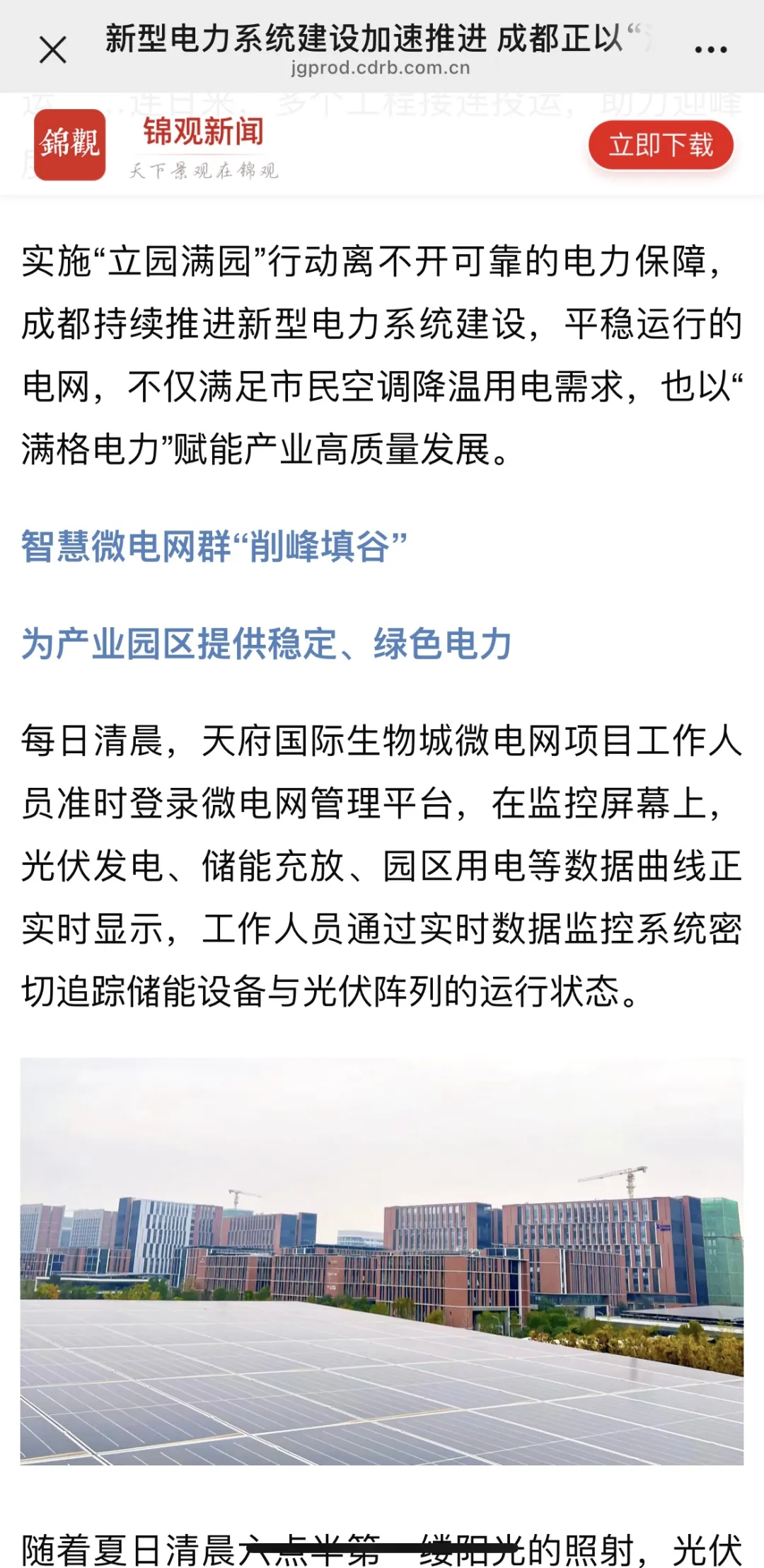 成都日報:新型電力系統(tǒng)建設(shè)加速推進(jìn) 成都正以“滿格電力”賦能產(chǎn)業(yè)高質(zhì)量發(fā)展